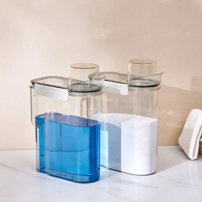 Large Capacity Transparent Laundry Detergent Storage Box with Lid - Airtight Organizer for Household Laundry Powder and Liquid, Perfect for Keeping Your Laundry Room Tidy